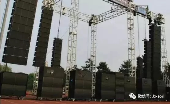 線性陣列音箱是為室外大型演出而設計的,最近有一種小型產品適用于室內。它的特點是指向性尖銳,每只音箱垂直輻射角度只有10~30度且音箱角度可精確調整,每倍距程衰減小到3dB。