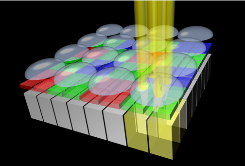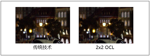 圖像傳感器的每個像素上,都有被稱為On Chip Lens的集光鏡片。傳統的構造,每個像素上面都有單獨的On Chip Lens. 而2x2 OCL為相鄰的相同顏色的4個像素,共用同一個On Chip Lens.