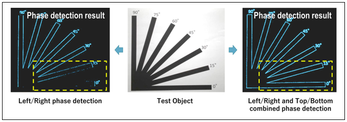 在傳統的相位差檢測方式中,由于像素被分割成左右來檢測,因此不擅長于水平方向上紋理沒有變化的被攝體(例如:由水平方向的邊緣構成的被攝體等)。