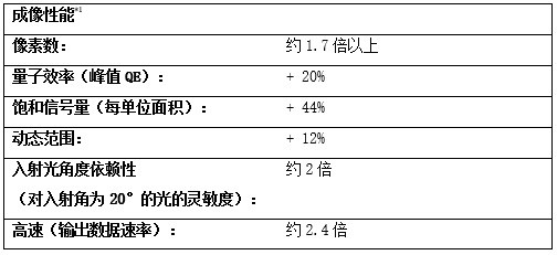 *1:使用該項技術對1.1英寸樣本進行比較,比較對象為索尼1.1英寸1200萬有效像素的前照式CMOS影像傳感器IMX253。