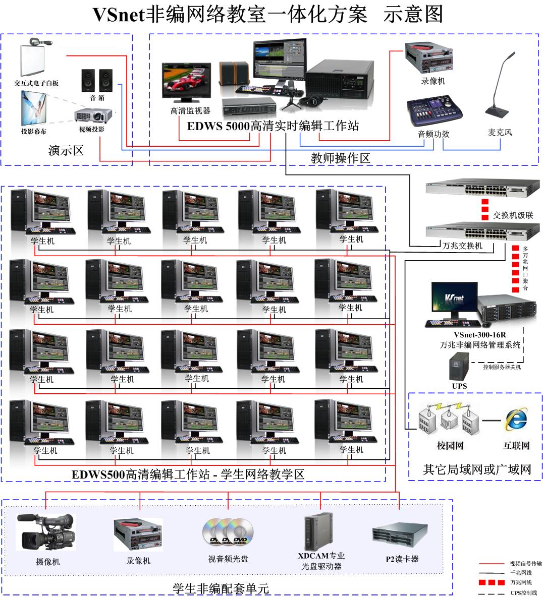 EDIUS實(shí)時非編教學(xué)網(wǎng)絡(luò)是雷特公司針對學(xué)校教學(xué)工作中對視音頻網(wǎng)絡(luò)編輯和資源共享的需求,而設(shè)計的以VS-net為核心管理平臺的視音頻實(shí)時編輯教學(xué)網(wǎng)絡(luò)。其包含了為教育環(huán)境設(shè)定的分工詳細(xì)的作業(yè)編輯、審核機(jī)制,可根據(jù)實(shí)際環(huán)境、作業(yè)的規(guī)模自由制定具體的作業(yè)編輯及分工、審核流程;提供了多級權(quán)限的素材共享管理機(jī)制;詳盡的權(quán)限、角色管理機(jī)制更便于建立教務(wù)主任、任課教師、機(jī)房教師等多級不同權(quán)限的管理角色和完善的學(xué)籍管理制度;配合日志管理及網(wǎng)絡(luò)監(jiān)控功能,讓教師和管理員能夠隨時對整個網(wǎng)絡(luò)資源的使用進(jìn)行有效監(jiān)控和管理。憑借成熟的網(wǎng)絡(luò)技術(shù)、編解碼技術(shù)、虛擬網(wǎng)絡(luò)通道技術(shù)等,為多站點(diǎn)視音頻網(wǎng)絡(luò)資源編輯和共享提供了可靠的技術(shù)保障。
