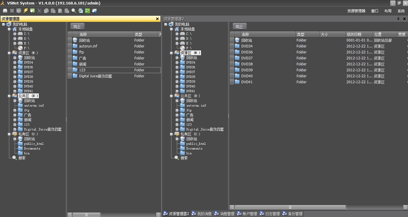 VS-net視音頻編輯網(wǎng)絡(luò)教學(xué)平臺具有功能齊全的多個管理模塊,可在這些管理模塊中自由定制適合教學(xué)需要的功能,包括:教學(xué)工作中用戶成員的建立和管理,如教師、教務(wù)組長、學(xué)生、管理員等多級不同權(quán)限的管理角色和完善的學(xué)籍管理;教學(xué)環(huán)境中組織結(jié)構(gòu)的建立和管理,如系別、班級等;還有教學(xué)中使用的視音頻多媒體素材管理及存儲空間的管理;以及視音頻編輯網(wǎng)絡(luò)教學(xué)流程的定制和學(xué)生作業(yè)的統(tǒng)一分發(fā)和學(xué)生機(jī)的屏幕監(jiān)控等管理。這樣就使VS-net在實(shí)際應(yīng)用中具有了更大的方便性和靈活性,同時也有效的保證了在復(fù)雜的教學(xué)環(huán)境中的各類數(shù)據(jù)的安全性和保密性。