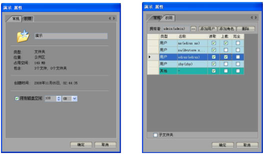 VS-net的存儲管理可以根據(jù)各班級、作業(yè)的具體存儲要求設(shè)定相應(yīng)的存儲空間。教師可為每個班級或作業(yè)設(shè)定不同的服務(wù)器存儲目錄,并可對每個服務(wù)器存儲區(qū)的存儲空間進(jìn)行具體的磁盤配額限制,這樣有效的防制了公共存儲資源的浪費(fèi)。通過與帳戶、角色設(shè)置相結(jié)合,為每個存儲空間添加有權(quán)限學(xué)生,并可通過設(shè)置界面詳細(xì)的設(shè)置每個學(xué)生的讀、寫、完全控制權(quán)限,以實(shí)現(xiàn)全面、安全、有效的存儲空間及權(quán)限管理。