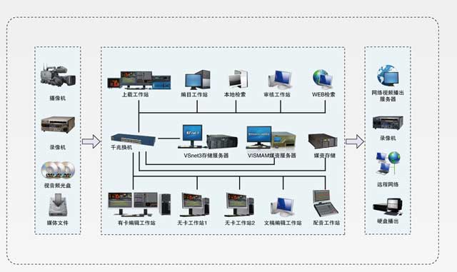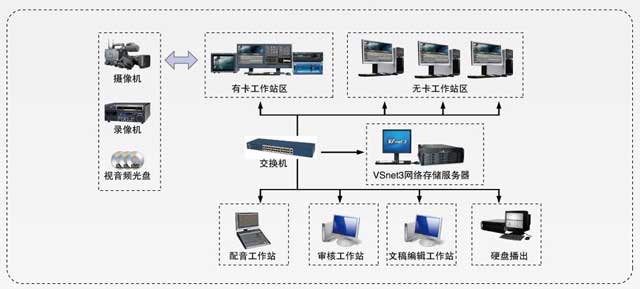 基于成千兆以太網架構,以滿足高清、標清不同規模、不同時效性節目制作的要求