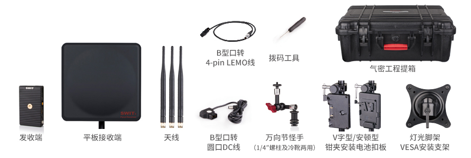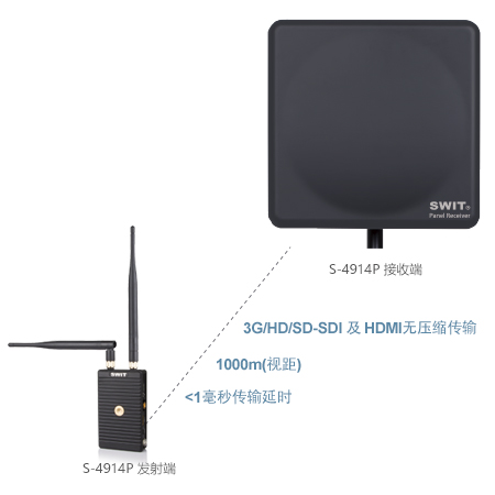 S-4914P廣播級/影視級無線圖傳,采用WHDI無線技術,5.1-5.9GHz無線頻段,配備高增益平板接收端,支持3G/HD/SD-SDI及HDMI無壓縮傳輸1000米,延時≤1毫秒。系統為純硬件連接,即插即用,廣泛應用于影視導演監看,航拍/飛貓/斯坦尼康監看等領域。