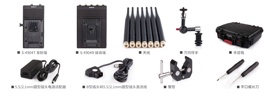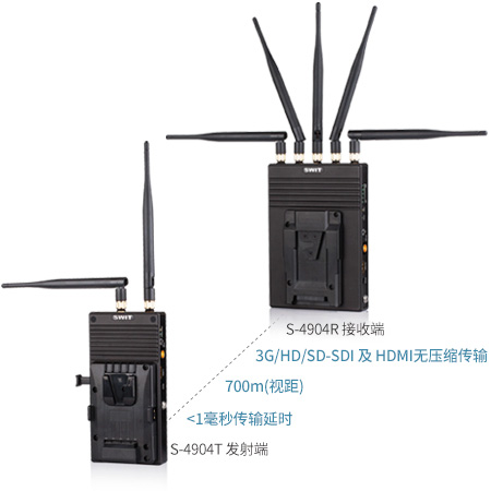 S-4904是廣播級無線系統,包括發射端S-4904T和接收端S-4904R,采用WHDI(OFDM)無線技術,支持3G/HD/SD–SDI 700米無壓縮傳輸,傳輸延時≤1毫秒。系統是純硬件連接,即插即用,廣泛應用于現場拍攝和導演監控。