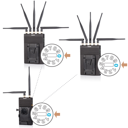 無線傳輸有0-9個頻段通道,使用時用戶可撥碼配對。在同一地點使用時,為了防止設備間互相干擾,我們建議: