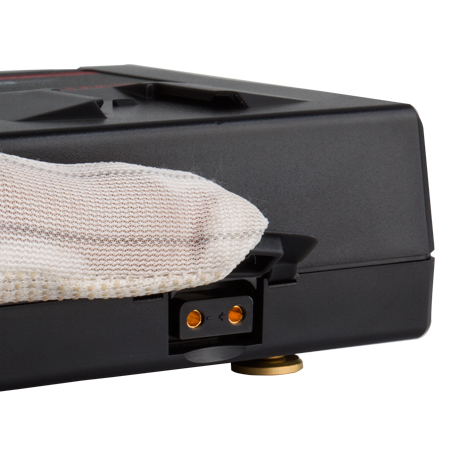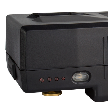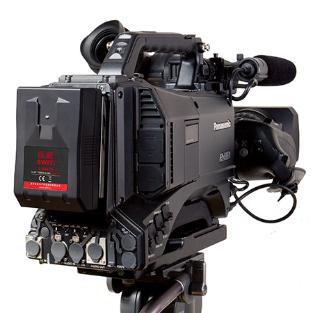 電池頂部配備B型口直流輸出,額定14.4V,可為機頭燈、監(jiān)視器、無線傳輸?shù)葦z像機端設備供電。