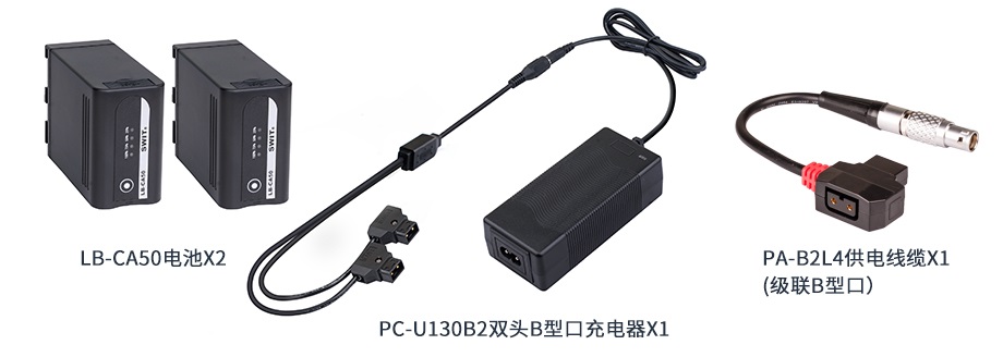 LB-CA50電池需通過B型口充電,視威提供雙頭B型口充電器PC-U130B2,可同時充兩個LB-CA50電池,總充電電流3A。