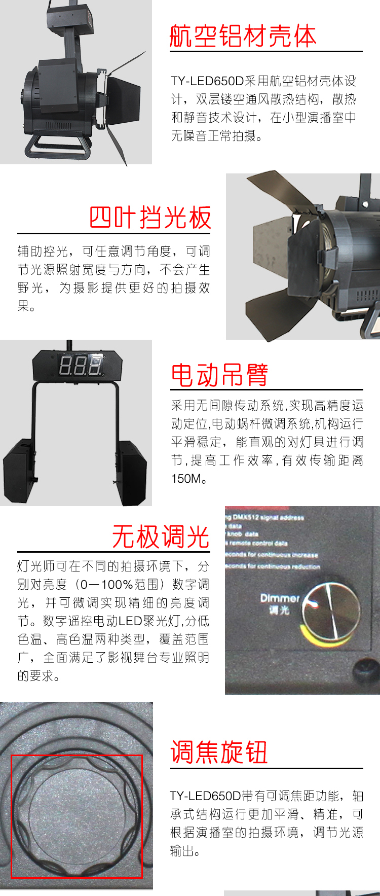 泰陽(yáng)無(wú)線(xiàn)數(shù)字遙控TYR-LED650D電動(dòng)螺紋透鏡聚光燈